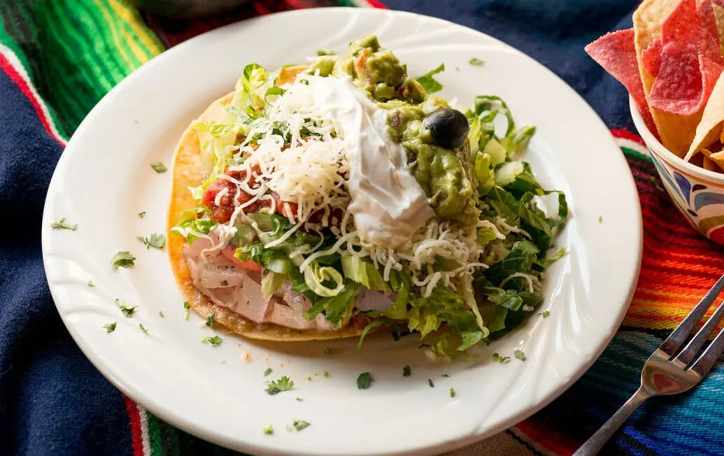 Totopos Gratinados con Salsa de Poblano y pollo stad
