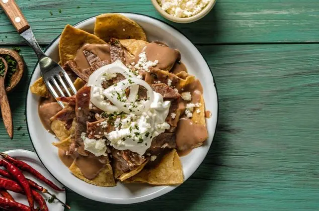 Recetario/ Chilaquiles con salsa de frijol y cecina